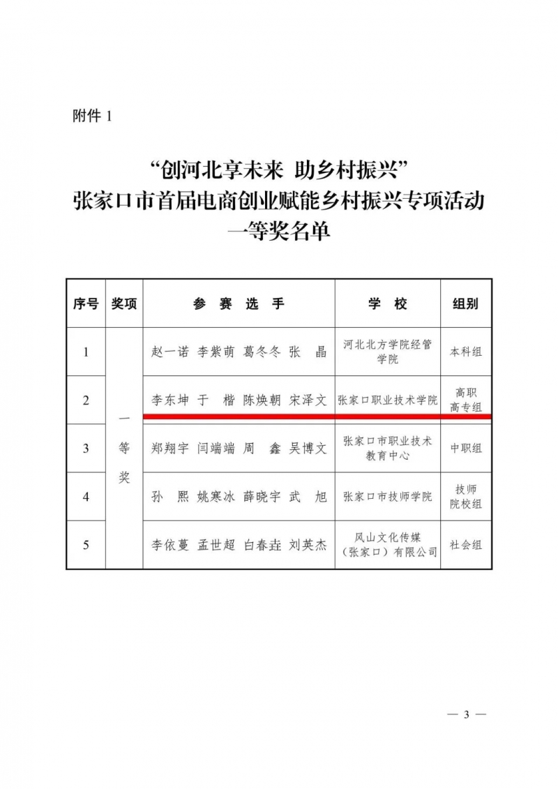 近日,河北省人力资源和社会保障厅、河北省乡村振兴局、张家口市人力资源和社会保障局公布了河北省第二届“我为河北代言” 电商创业赋能乡村振兴大赛获奖名单和“创河北享未来 助乡村振兴” 张家口市首届电商创业赋能乡村振兴专项活动的获奖名单。我系指导教师常敏参赛队获得省赛三等奖一项,市赛一等奖一项。