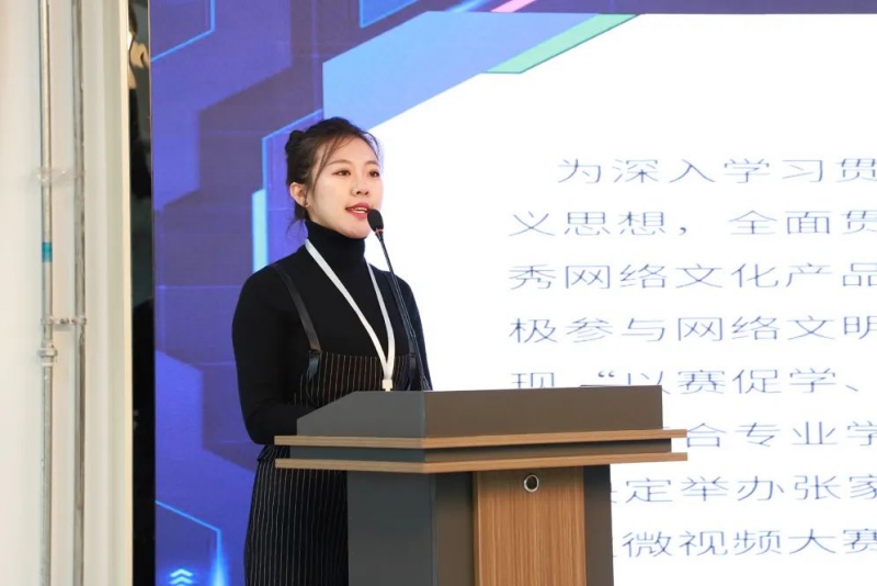与会人员还现场观看了微视频大赛启动宣传视频;电子商务系教师详细讲解了比赛规程;学生代表作了表态发言。