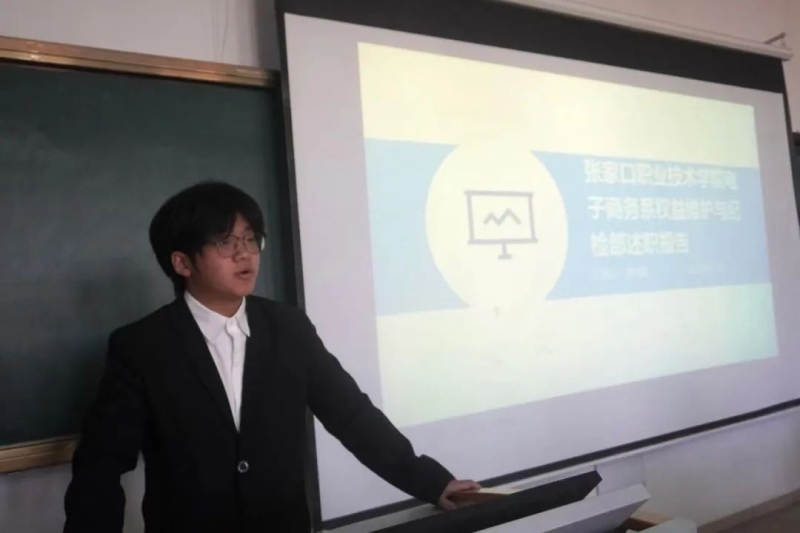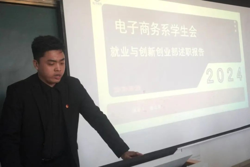为深入总结本年度电子商务系团总支学生会各部门的工作成效,全面、客观地评估学生干部的履职情况,进一步提升团学组织的纪律作风和工作能力,通过系统回顾与总结,打造一支精干高效、纪律严明的团学干部队伍,为系部的科学、规范、 高质量发展提供坚实的人才支撑,1月3日电子商务系举行团总支学生会2024年度团学干部述职擂台赛。电子商务系副书记、副主任游月秋、副主任杨笑、团总支书记常敏、党建办公室主任任云云、系部教师葛瑾璐、田永娟、张子宁、白梅梅、刘佳雯担任评委。系部团总支学生会全体成员参加此次活动。