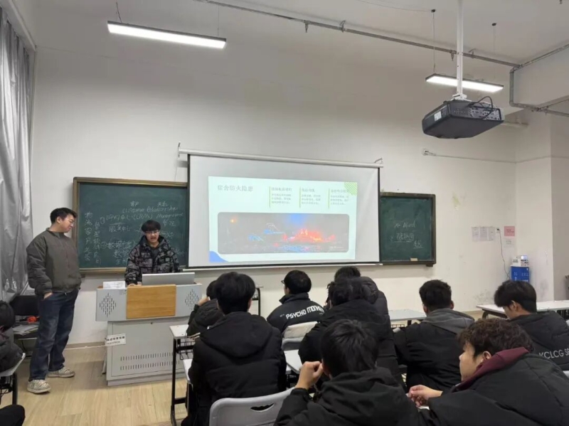 活动以讲座结合互动问答的形式展开。工作人员借助“冬日常鸣防火钟,校园安全伴我行”主题PPT,向同学们详细讲解冬季火灾高发缘由与校园重点火灾隐患点,明确宿舍和校园公共区域防火安全规范。互动问答环节,同学们积极参与,踊跃提问,工作人员耐心解答,现场氛围热烈。