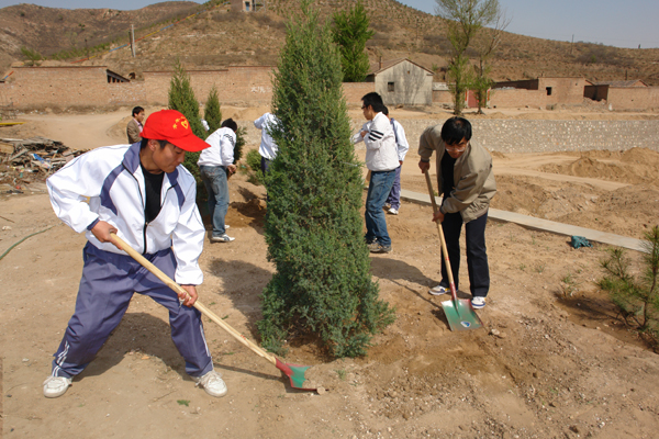 4月28日下午,学院组织师生百余人到行政办公楼北侧的荒坡上植树绿化美化校园。学院领导王立秋、靳明、韩致爱、陈怀勇、许建平、宋德明与各行政部门教师代表、各系教师学生代表一同参加了植树活动,共种植松树、柏树、丁香树110余株。
