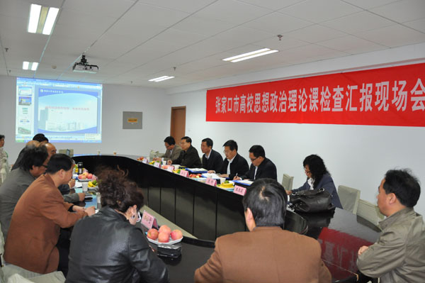 4月20日由河北北方学院党委副书记鲁杰为组长的张家口市思想政治理论课程建设专家组一行7人来taptap点点对思想政治理论课课程建设情况进行检查。taptap点点党委书记姜铭致欢迎辞,并重点介绍了学院的发展建设情况。社科部主任白义对taptap点点思想政治理论课课程建设自查情况做了汇报。检查组充分肯定了taptap点点思想政治理论课课程建设取得的成绩,并对思想政治理论课课程建设提出了宝贵意见。