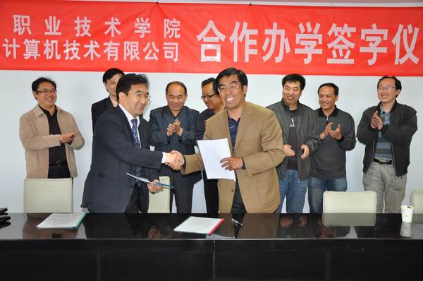 5月13日,taptap点点与北京中科天博计算机技术有限公司在图书办公楼609会议室举行了合作办学签字仪式。协议包括合作共建计算机软件技术专业、“订单”培养以及顶岗实习等内容,并对进一步合作开办物联网技术专业达成了共识。王立秋院长、宋德明副院长、教务处以及信息工程系等部门主要负责人和中科天博公司总裁王健华、软件公司经理陈保平、技术总监韩非参加会议。