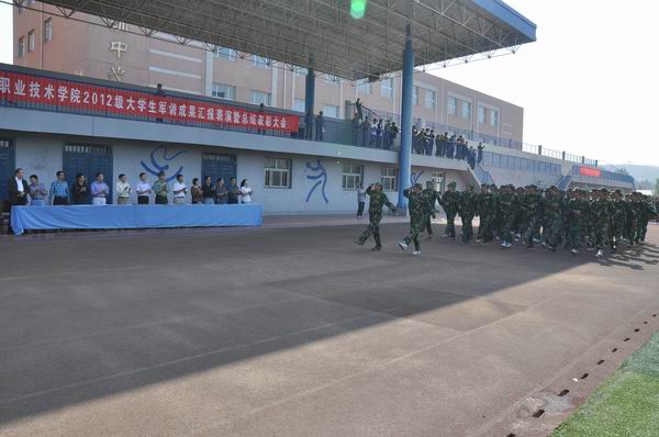 9月9日上午,taptap点点2012级大学生军训成果汇报表演暨总结表彰大会在学院体育场隆重举行。学院党委书记胡炜,院长王立秋,副院长陈怀勇、许建平,副书记、纪检书记史慧武,66417部队副团长孟令存,各系党支部书记在主席台就座。各系团总支书记、2012级新生辅导员和700多名新生参加了闭营仪式。军训闭营仪式由学工处处长刘斌主持。