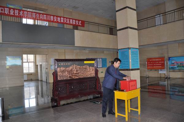 王立秋院长主持了捐款仪式,发出了赈灾募捐、奉献爱心的倡议,号召全院师生为灾区人民捐款,希望聚集学院全体师生的力量,给雅安人民以关爱和支持,帮助他们早日渡过难关、重建家园。随后,师生代表纷纷将自己的一份力量、一片爱心投入捐款箱内,部分在外出差的院领导和教师也特地嘱咐由其它教师代捐。捐款将在汇总后以学院的名义及时送达相关部门。