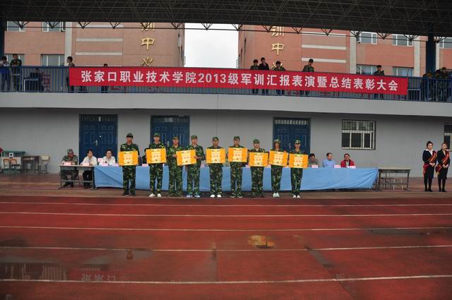 9 月18日上午9时,伴随着庄严雄壮的国歌声,taptap点点2013级新生军训汇报表演暨总结表彰大会在体育场隆重举行。党委书记胡炜、院长王立秋、纪委书记史慧武出席大会,各系书记、团总支书记、新生辅导员及学院军训领导小组全体成员参加了大会,张家口军分区军训办参谋翟民伟应邀到会。大会由史慧武主持。