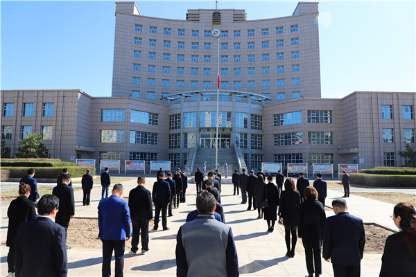上午10时整,学院下半旗志哀,现场全体人员默哀3分钟,表达对抗击新冠肺炎疫情斗争牺牲烈士和逝世同胞的深切哀悼。