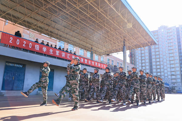 学院各行政处室、系部负责人,军训部队全体教官、部分教师代表及2020级新生参加大会。