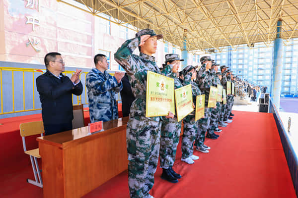 军体拳汇报表演中,学生们目光坚定,气势如虹,挥拳踢腿干净利落,一招一式刚健有力,尽显披荆斩棘的壮志与豪情;队列汇报表演中,学生们军姿标准挺拔、动作整齐划一,展示出高昂的士气、奋发向上的精神风貌和14天来的艰苦训练的丰硕成果,赢得了现场领导和观众的热烈掌声。