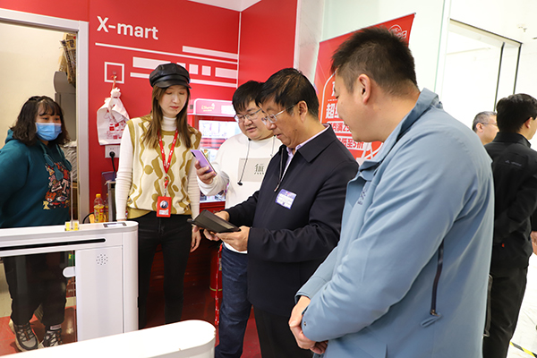 在位于北京亦庄经济开发区的京东集团总部大厦,冯印涛一行参观了京东集团无人化配送、无人零售业态、自有品牌销售、电商直播等不同项目的展示。冯印涛还亲身体验了京东无人零售业态一体化流程的便捷性。