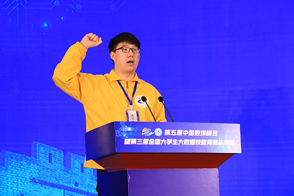 第三届全国大学生大数据技能竞赛裁判李辉、参赛选手章皓禹分别代表裁判员、参赛选手宣誓。