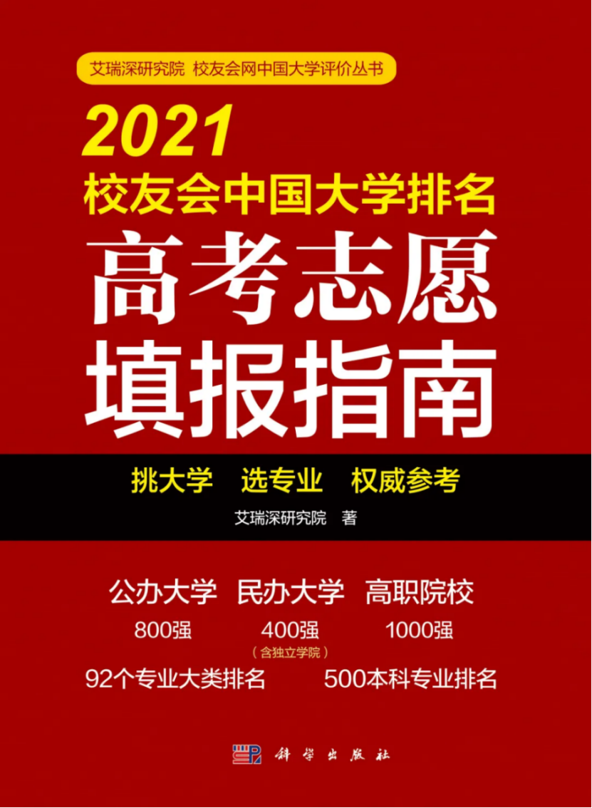 2021年3月25日,全国第三方大学评价机构艾瑞深校友会网(cuaa.net)正式公布《2021校友会中国大学排名—高考志愿填报指南》,最新发布校友会2021中国高职院校排名榜单。