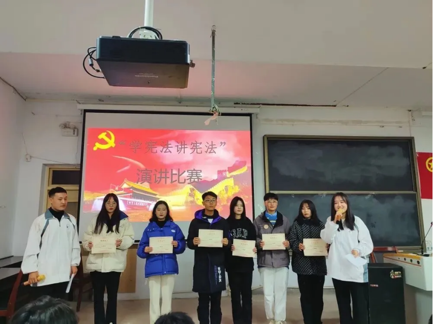 在演讲比赛中,参赛选手们围绕“学宪法,讲宪法”主题,用激情饱满的语言讲述发生在他们身边关于宪法的故事,尽情阐释他们对宪法的理解。使宪法生动形象地展现在同学们眼前,让同学们更加愿意了解宪法,遵守宪法,维护宪法。在知识竞赛中,各班同学积极参加,最后按照分数最高、用时最短的标准选出个人奖,其中不少同学取得优异成绩。