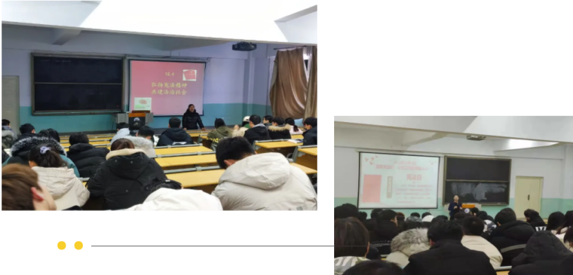 思政教师将习近平法治思想进课堂与宪法学习宣传活动相结合,向学生生动讲授了“维护宪法权威”教学内容,教育引导广大学生大力弘扬宪法精神和社会主义法治精神,将法治意识融入血脉、深入灵魂,坚定不移走中国特色社会主义法治道路。