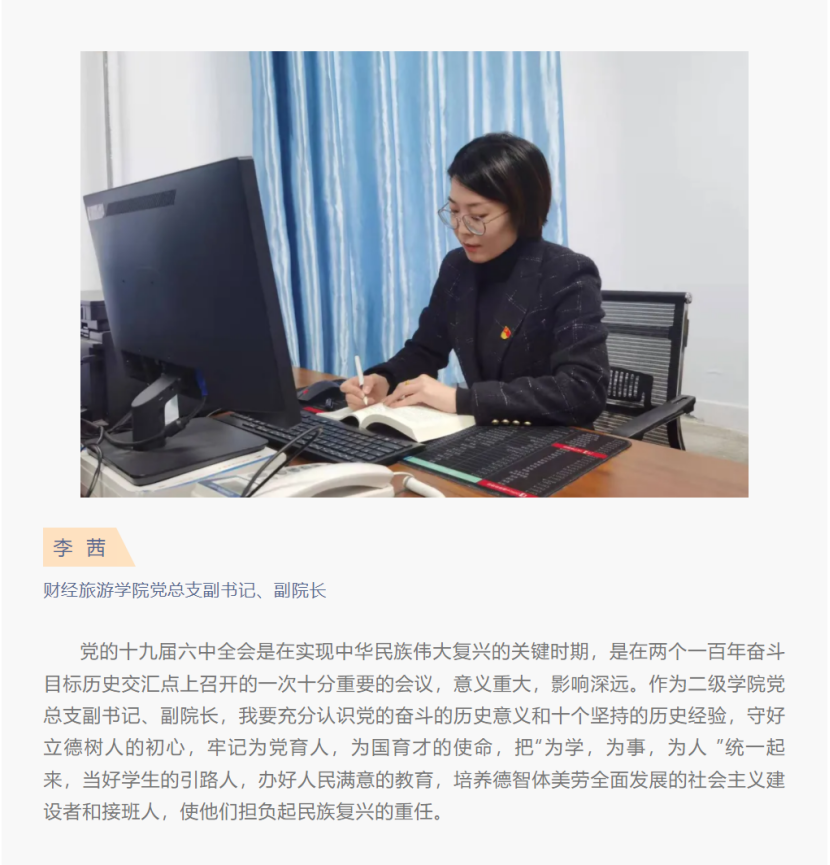 张职院热议 | 财经旅游学院教师热议党的十九届六中全会精神