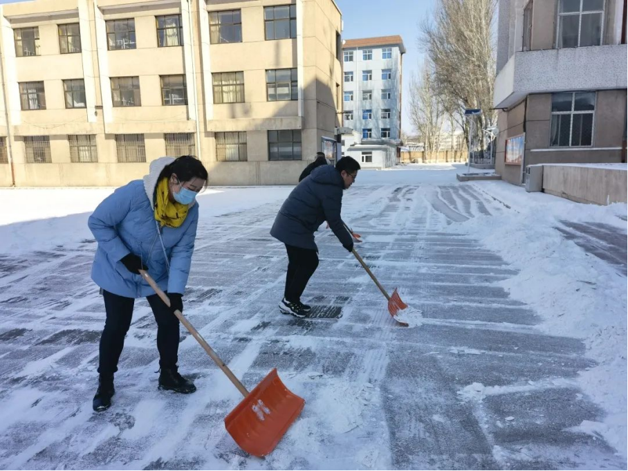 “以雪为令、随下随清、雪停路净”,学院党员干部积极响应上级号召,主动出击,吹响了铲雪除冰“集结号”。