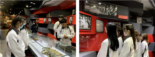 在讲解员带领下,祭扫师生还集体参观了革命烈士纪念馆。纪念馆以丰富详实的图片和文字资料,生动展示了革命英烈们在党的领导下前赴后继、英勇战斗,探求救国救民、民族富强的历史道路。大家时而驻足凝望、静思感悟,时而热泪盈眶、低声交流,内心被一段段真实的历史所感染、震撼。