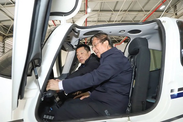 在集团董事长周革、总经理白力峰陪同下,冯印涛一行参观了公司荣誉展厅、航空科技展厅、航线指挥平台,听取了工作人员就航空专业知识、行业发展趋势等内容介绍,现场体验了模拟飞行器的操作感受。随后,冯印涛又来到救援直升机起降场、航空器维修中心,近距离参观了西锐SR20固定翼飞机和恩斯特龙480消防直升机等机型,对飞机机型特点及遂行任务进行了详细了解。