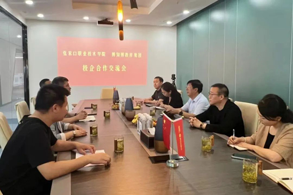 冯印涛就张家口及学院基本情况作了简要介绍,他指出,张家口区域位置优势明显,交通网络发达便利,历史文化底蕴丰厚,产业发展日趋成熟。随着后冬奥时代的到来,张家口进一步打造经济发展新亮点和经济增长新引擎,实现了后冬奥经济绿色高质量发展。希望通过与博知博、百食轩等企业的深入合作,进一步提升学院高水平技能人才的培养能力,为师生与企业搭建更为宽阔的交流合作平台,在助推企业发展和服务区域经济社会发展中,发挥出职业院校应有的作用。