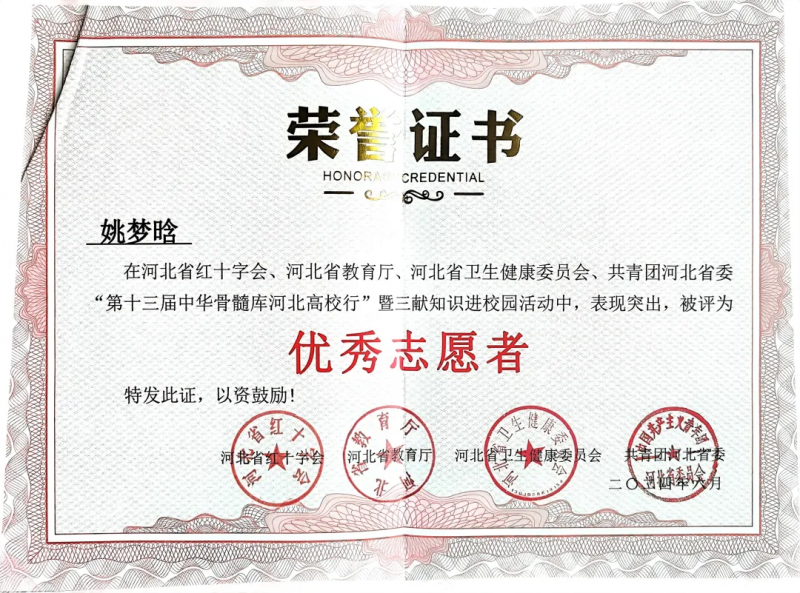 近日,在由河北省红十字会、河北省教育厅、河北省卫生健康委员会、共青团河北省委共同主办的“第十三届中华骨髓库河北高校行”暨“三献”知识进校园活动总结表扬大会落下帷幕。大会对“河北高校行”活动中优秀志愿服务组织及优秀志愿者进行表彰。taptap点点校学生会主席刘治泽,青年志愿者服务队队长姚梦晗、副队长袁聪聪荣获“优秀志愿者”荣誉称号。