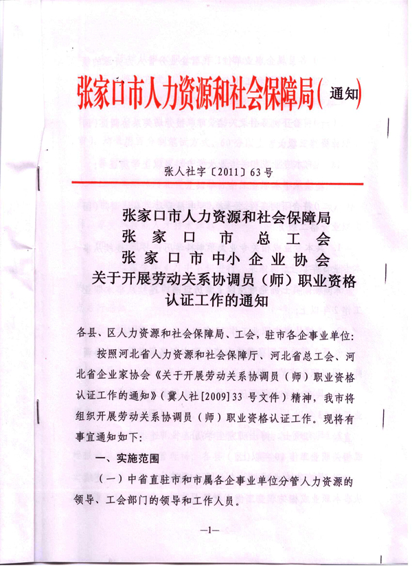 关于开展劳动关系协调员(师)职业资格认证工作的通知
