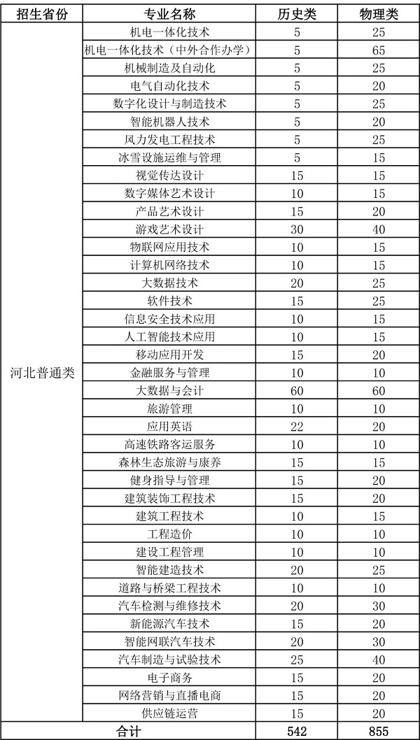 2023年河北省内分专业招生计划