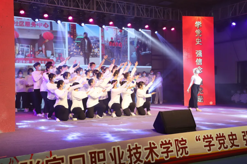 活动过程中,精心编排的文艺演出将整场气氛不断推向高潮。大学生青春文艺团的合唱《少年》,诠释出新时代青年学生一心向党、昂扬奋进的精神风貌;话剧《觉醒年代》艺术地再现了一百年前峥嵘岁月中,中国先进分子和热血青年通过思想转变不断探寻救国之路;情景剧《同心抗疫》回顾了2020年战“疫”过程中涌现出来的医生、警察、志愿者等不同优秀群体的先进事迹,向每一位在抗击疫情中舍小家为大家的人民公仆表达敬意;合唱《当代力量》唱出了广大青年学生对祖国的热爱,对中国战疫英雄的敬意;歌曲《少年中国说》呈现了青春校园中青年学生积极向上、朝气蓬勃的精神面貌和为学校、社会、国家发展贡献力量的信心和决心;独舞《芳华》优美大气,抒发着对祖国深沉的爱;舞蹈《梦圆冬奥》表达了张职学子对2022冬奥会的美好祝福。