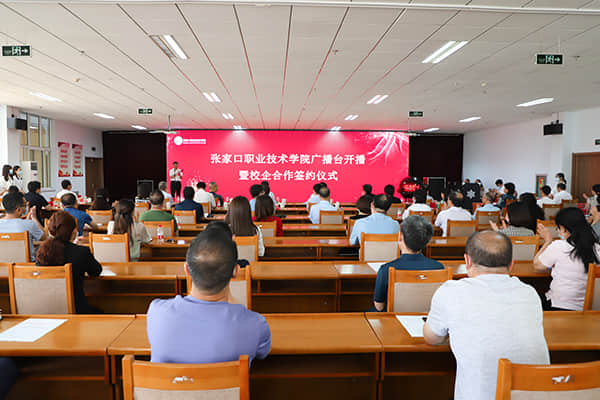 市委宣传部副部长、张家口新闻传媒集团董事长刘庆国,市教育局副局长贺志英、张家口新闻传媒集团副总经理王哿、北京神州优品电子商务有限公司区域负责人顾伟朋;学院党委书记冯印涛、院长王立军,党委副书记杨汝明、常务副院长李炜杰、副院长胡伟奇出席仪式。