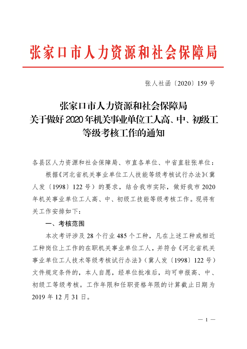 关于做好2020年机关事业单位工人高、中、初级工等级考核工作的通知